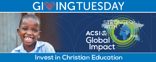 The ACSI Global Impact Fund supports our mission to strengthen Christian schools and equip Christian educators worldwide as they prepare students academically and inspire them to become devoted followers of Jesus Christ. Your contribution will advance the Christian school movement and help ensure essential trainings, resources, and support continue to be provided worldwide. Thank you for supporting ACSI's global mission and opportunities in the following divisions: